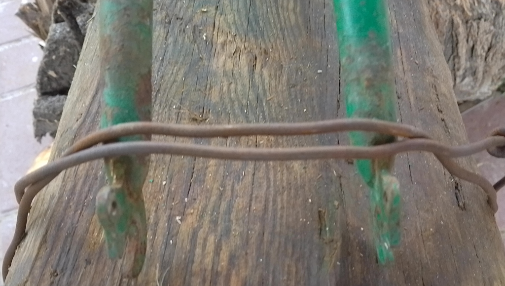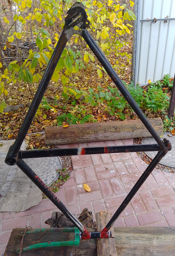 Начорно зачистив металевою щіткою на "болгарці". Під залишками зеленої фарби виявилися незначні залишки чорної фарби (фото), скоріше за все фабричного нанесення. Фарбування буду робити навесні.