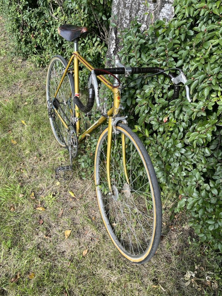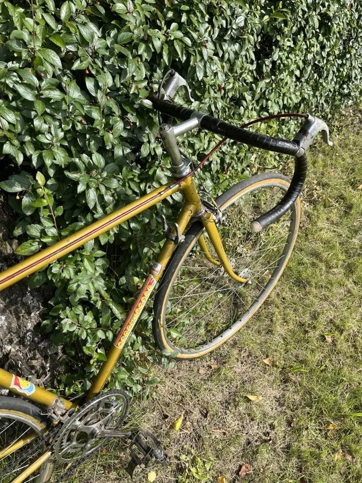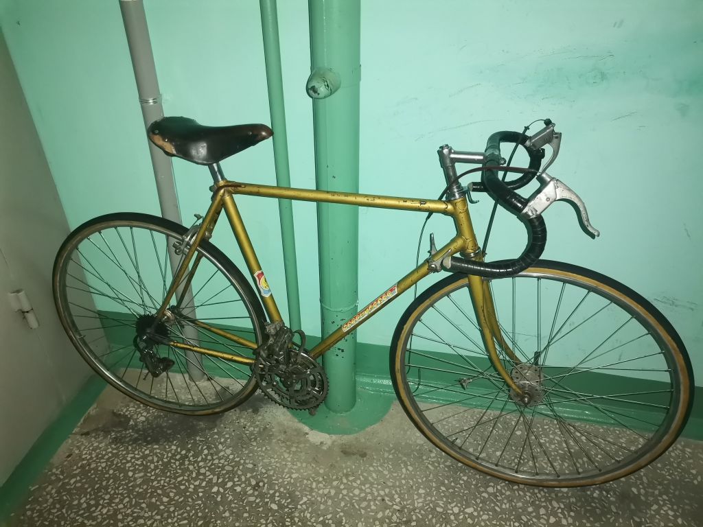 Да, а похоже это всё на шестизначный короткий стартон 83-86 года, с родными рулём-седлом-тормозами, но с чужими колёсами (высокий фланец на втулках кончился на первых мутных)