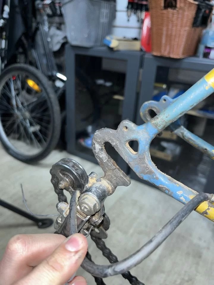По технической части комплектный, из неисправностей только передний переклюк, который не переключает, с которым я пока не разбирался, и отклеившаяся задняя трубка.