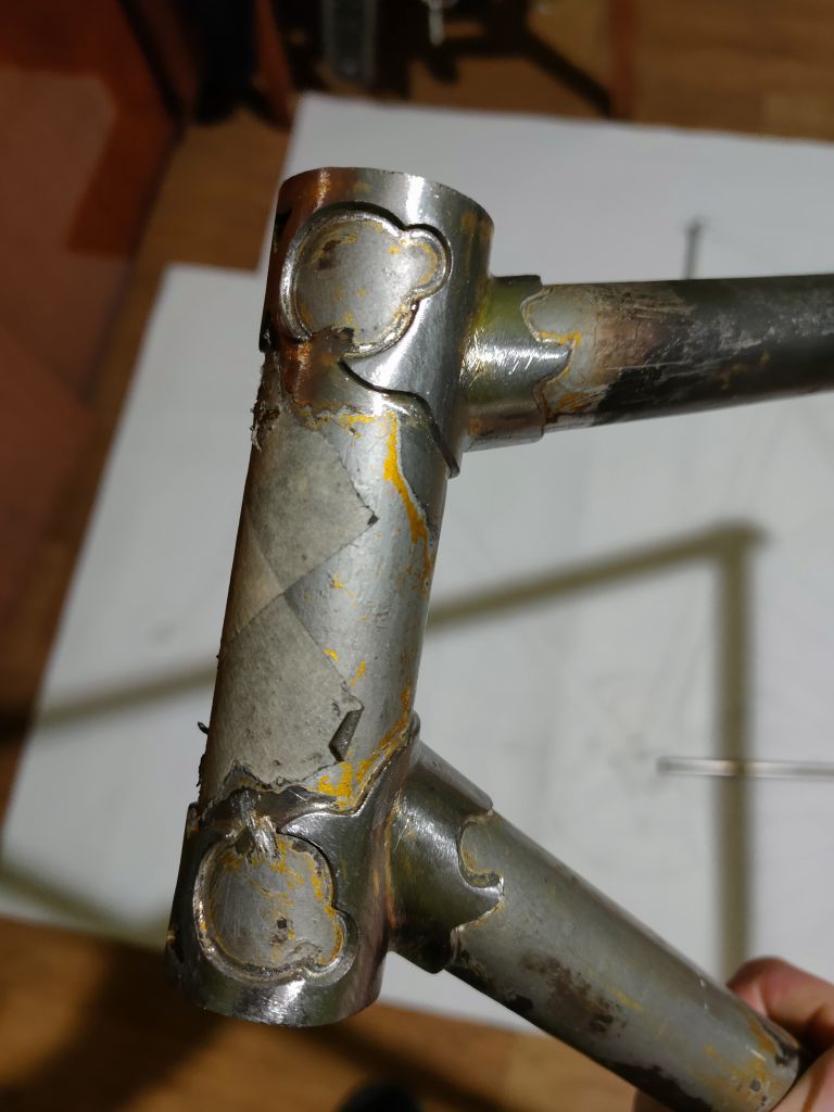 У меня было в распоряжении 5рам, впоследствии добавилось еще две. Выбор рамы не простая задача. Они все отличаются друг от друга как качеством изготовления узлов, так и длиной труб рамы, а соответсвенно и углом наклона рулевого стакана, провисом каретки. Что меня удивило, так это рама хвз чемпиона 58г. у него не такой большой провис каретки как на том же 555, а главное более тупой угол рулевой за счет более короткой трубы идущей от рулевой к каретке. У меня была рама 90г. Вот у нее похожая геометрия. Рама 88г. тоже отличается. Речь идет об основном треугольнике, задний треугольник я не беру в расчет. Выбор пал на раму хвз 552 1966г по трем причинам: