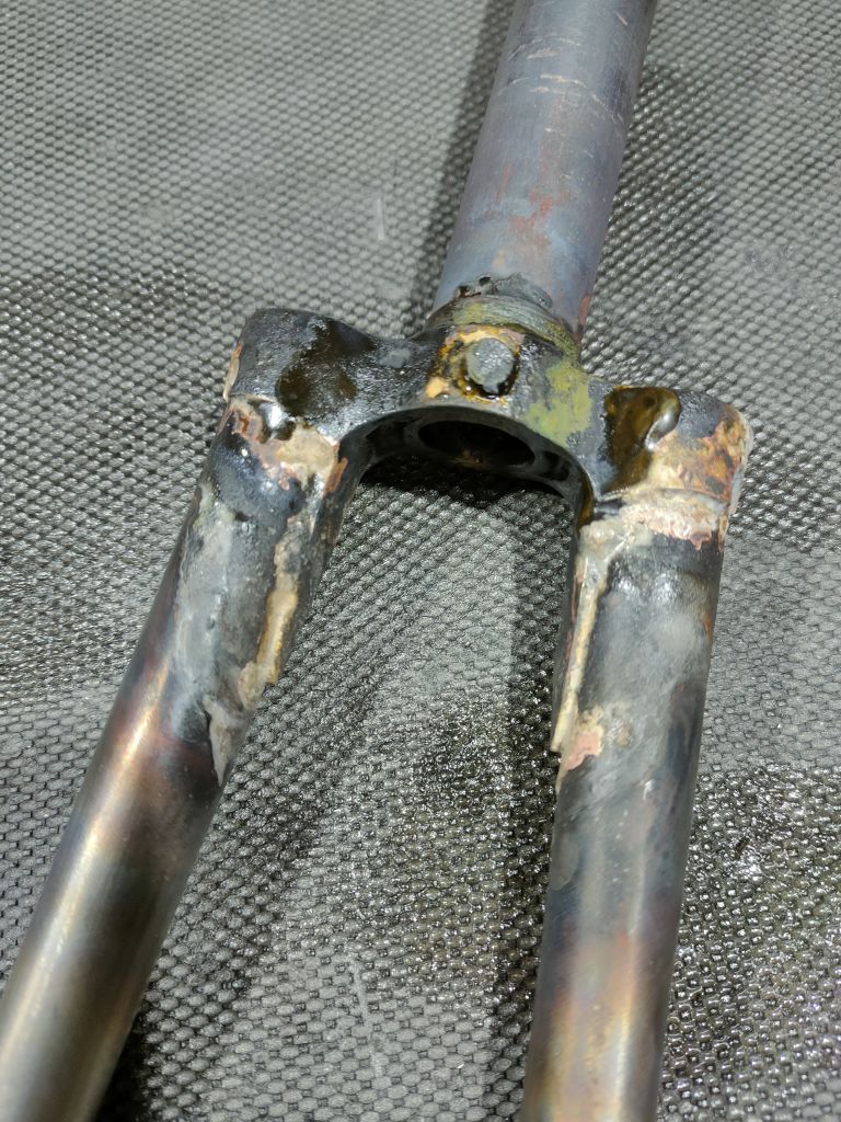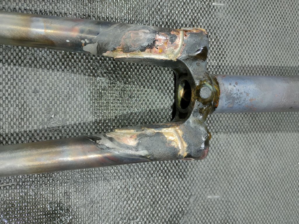 Теперь собственно что я паял. Это накладка на трубу и наплавил там где подседельный узел, галтель же хотел сделать и пару раковин залил. Интересный опыт, что то смешанное между обычный пайкой свинцово-оловянным припоем и сваркой аргоном. Ну больше всего мне это напомнило именно пайку кузовным припоем. Был и такой у меня опыт.)