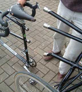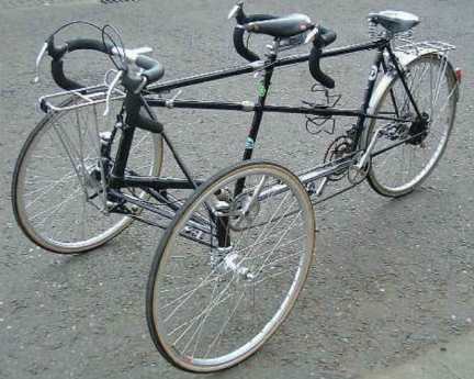 CustoмBicyclь, тут, если подумать, можно засамоварить две передние секции: одна, как на картинке, и вторую классическую. И менять их по мере необходимости: хочешь — едешь на классическом тандеме, хочешь — на трайковом