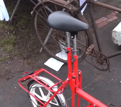 гм. я так понимаю, создателю этого складника показалось, что один подседельный штырь тут долго не проживёт. и он воткнул два. и похоже, кинематика складывания подразумевает, что параллелограмм из двух труб сохраняет настройку высоты.
