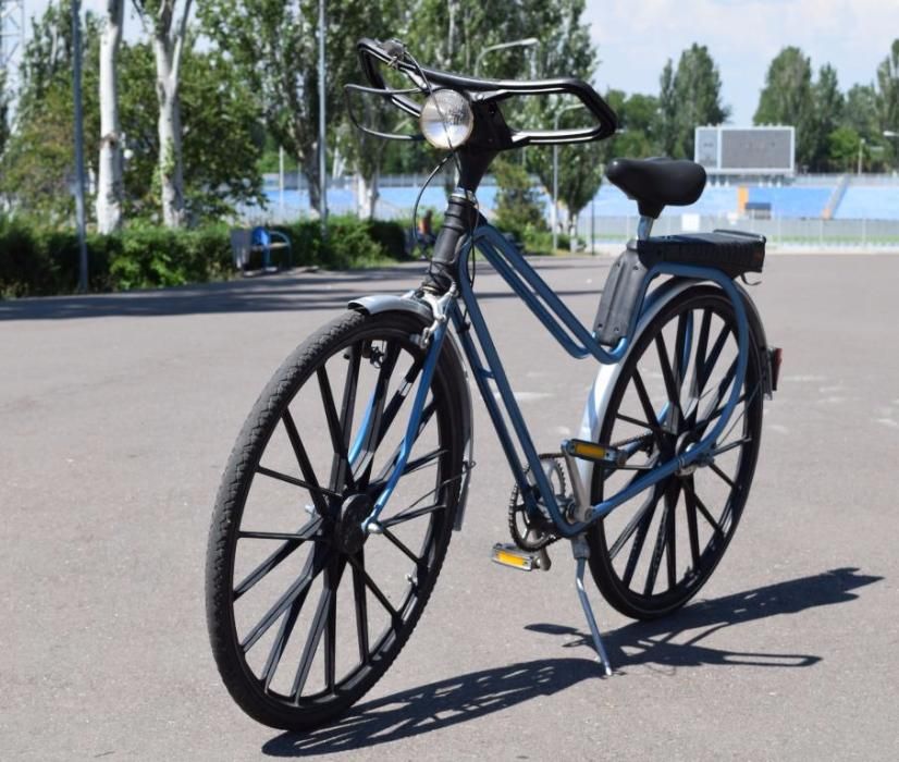 Обыкновенные европеец с трёхскоростной планетаркой, динамкой и фарой. Нестандартное исполнение скорее всего сделано для привлечения падких на всё новое покупателей.