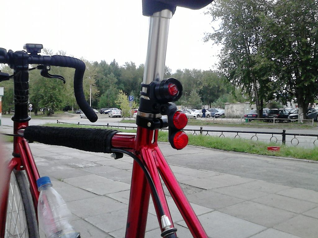 Микроскопиченской длины вынос, левая тормозная ручка, пока что без тормоза переднего, и длинная самопальная труба выноса, пока что самое слабое место в конструкции.