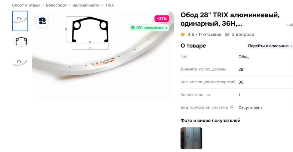 Артикул у вашего обода есть? Точное название? Катртинка с профилем? (Он, кстати, плавный, как оригинал, или домик угловатый?)