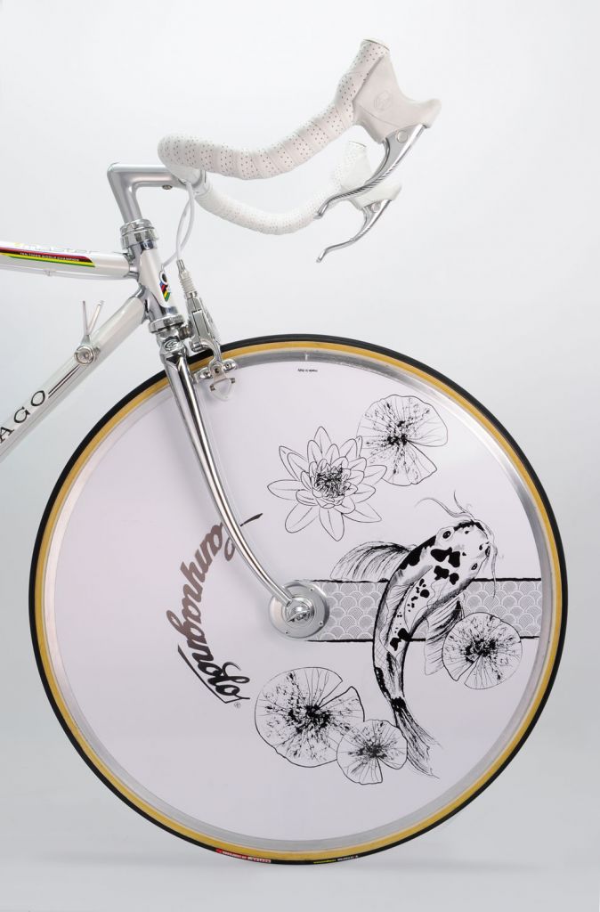 Странно видеть японские мотивы на откровенно итальянском велосипеде, но что-то в этом есть.