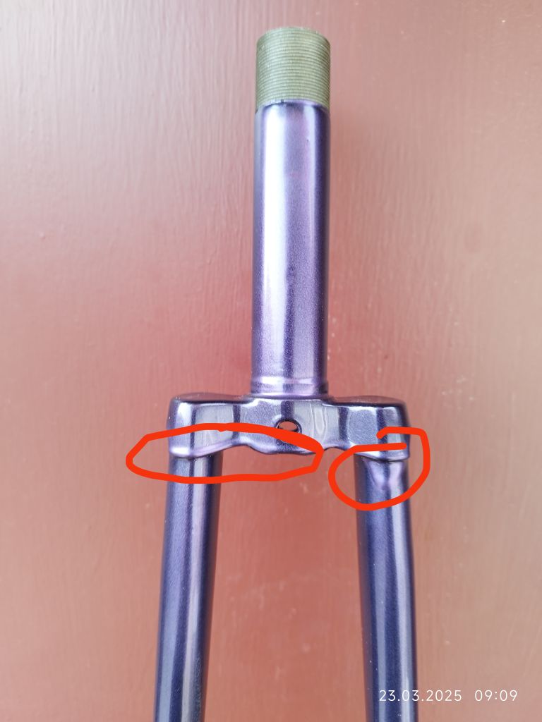 Рама выглядит лучше, потому что её переделали. Тоже были сопли от лишней краски. А вилку видно не стали перекрашивать.