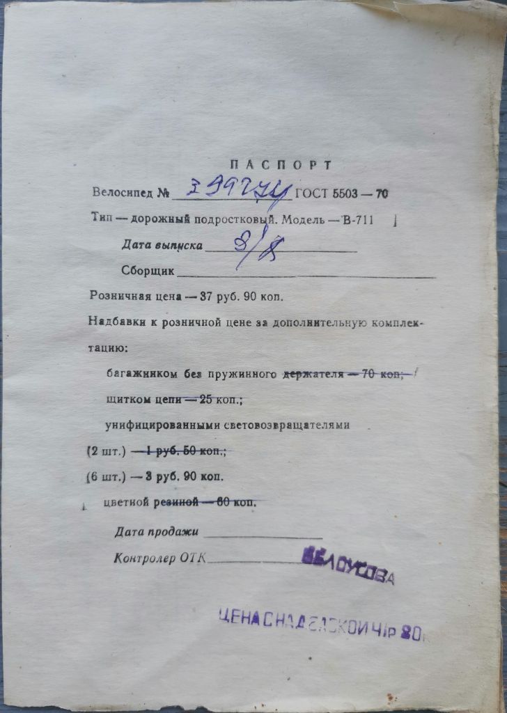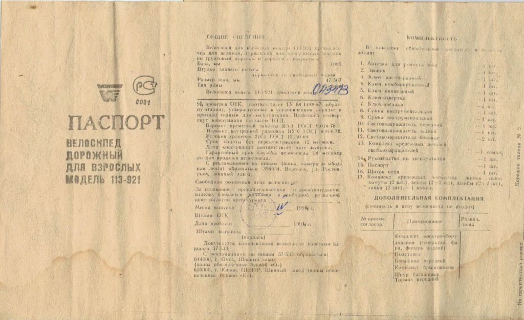 Re: Документация (паспорта велосипедов, инструкции по по эксплуатации)