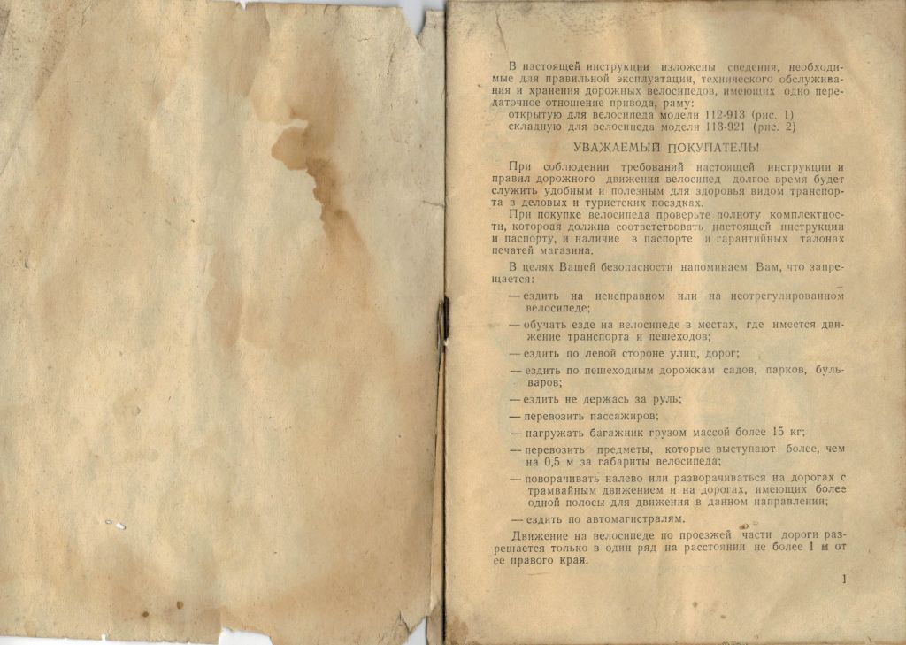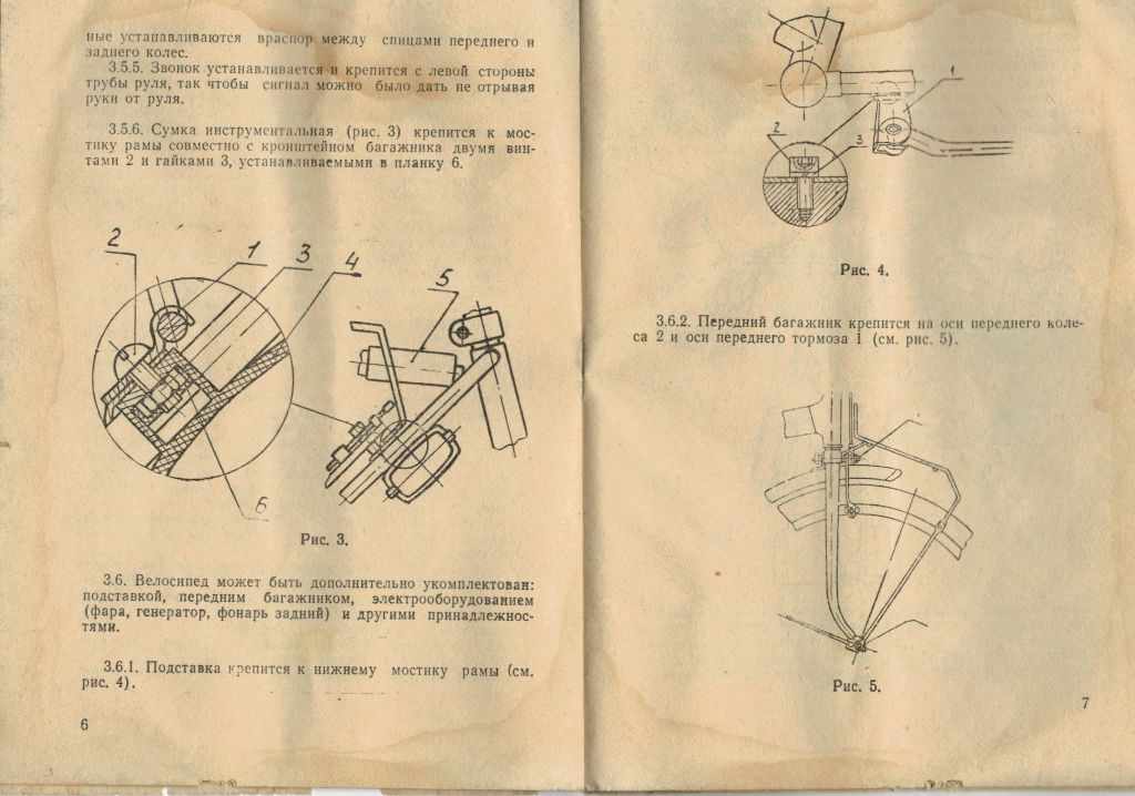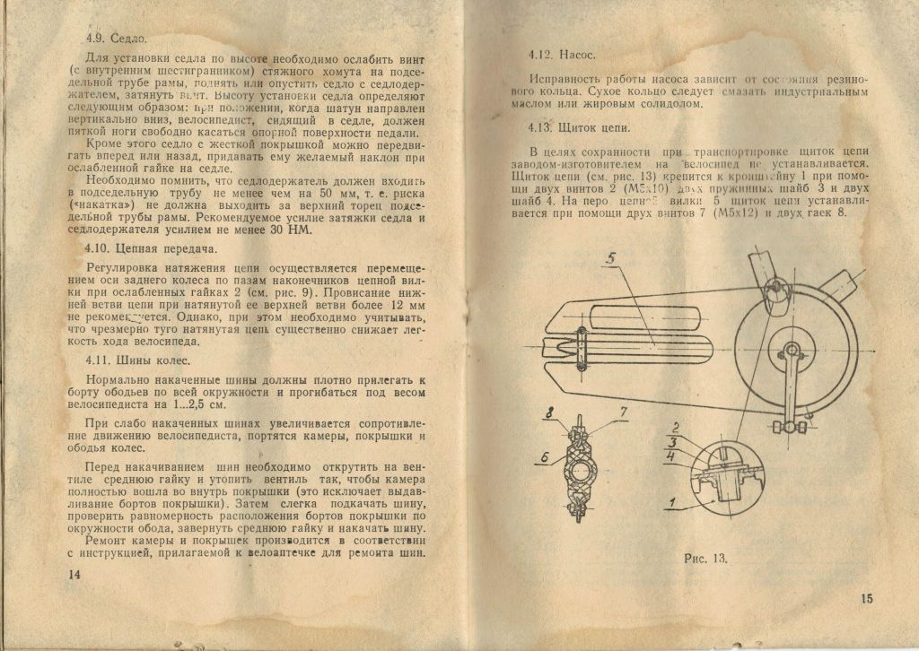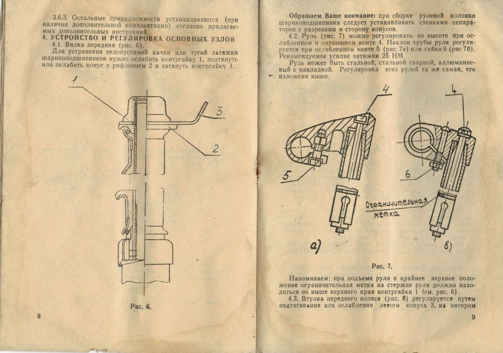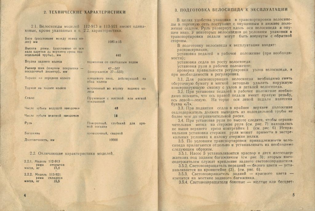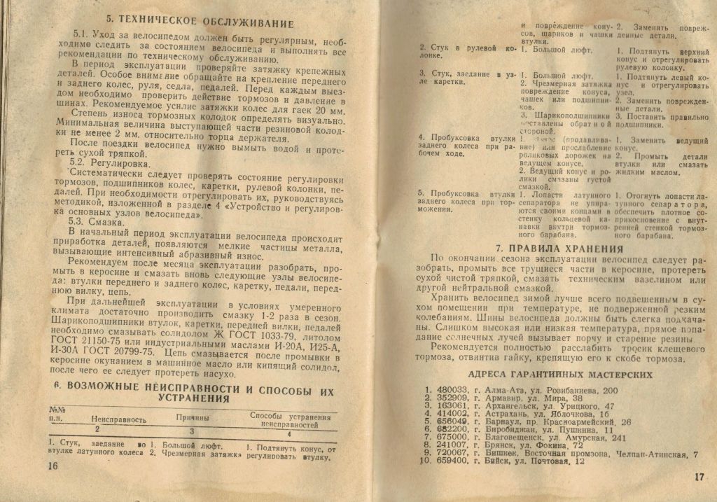Руководство по эксплуатации дорожных велосипедов 113-661 Кама, 113-653 Универсал, 111-631 Урал, 111-641 Урал (ПО ВЕЛТА, Пермь)