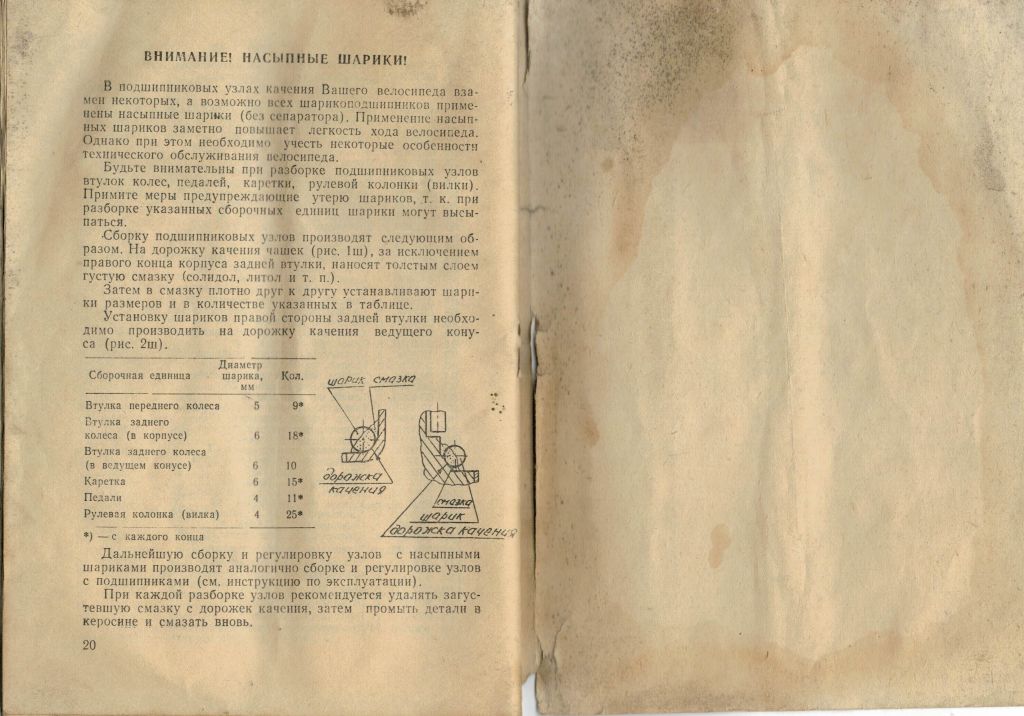 Велосипеды дорожные моделей 10В, 20В и 21В. Инструкция по уходу и эксплуатации (Пенза, 1969 г.)