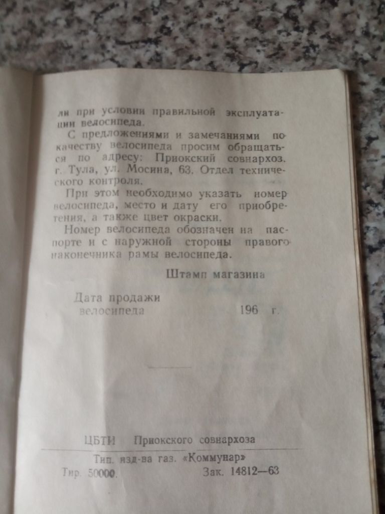Дорожный велосипед «Урал». Руководство по уходу и эксплуатации дорожного велосипеда В-124 «Урал» (Пермь, 1964 г.)
