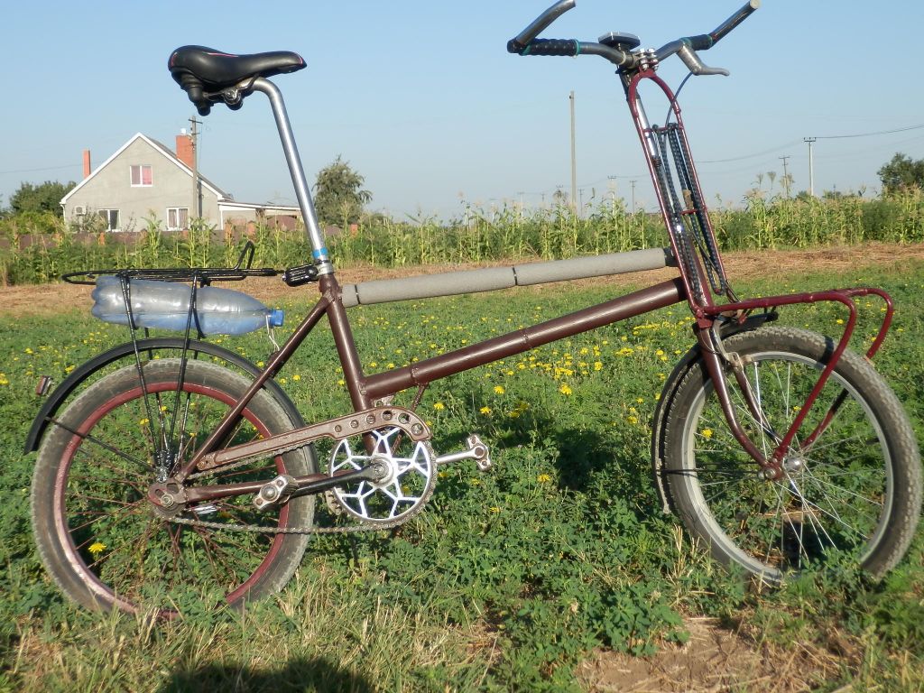 Пару дней назад проводил родственников,кстати Ваших земляков,из Астрахани, так вот в процессе отдыха организовывал и покатушки (гостевых велов у меня хватает) ,и был удивлен,особым спросом пользовались малоколесники,а у меня их всего три:Десна,Stels и Салют,короче на всех не хватило.Сейчас вот сижу и чешу репу(голову),надо сделать еще один малоколесник,реально есть рама от вела "Салют",но ее надо править,вертолет конкретный,второй вариант- посетить пункт приема металлолома и подобрать раму от складного "Stels" — этого добра много,но к сожалению почти все они гнутые,не понятно,как можно гнуть такие массивные рамы,видимо детишки какие то секреты знают,а вот править их не просто.И еще в последнее время стали сдавать велы на металл,предварительно распилив на несколько частей.