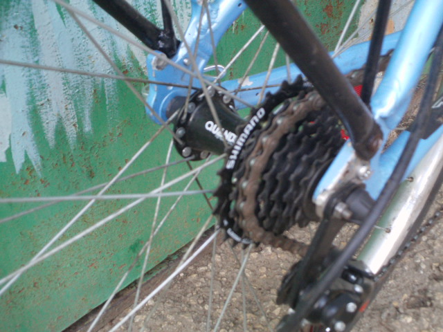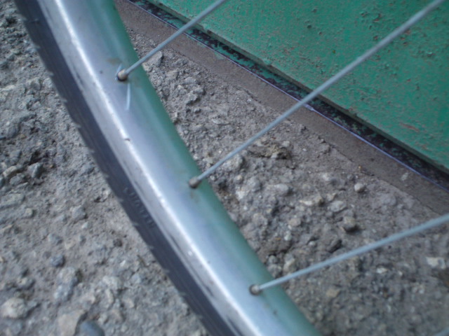 Для улучшения комфорта решил поставить более толстую резину на заднее колесо. В результате промеров выяснилось,что больше 40мм. не станет. Под такую резину нужен обод шириной 25мм. и еще на 32 спицы,т.к имеется втулка под кассету на 32 спицы. Такой обод не нашел ,и решил колхозить: из закромов достал передний алюминиевый передний обод от дорожника " Сура", как раз на 32 спицы, китайскую кассетную втулку б/у,спицы подошли стартоновские и не спеша,с шайбочвами,собрал колесо. В магазине попалась со скидкой уцененная кассета на 7звезд,11- 28,ее и поставил и в довершение купил дорожную покрышку на 40мм ширины.