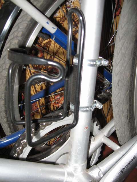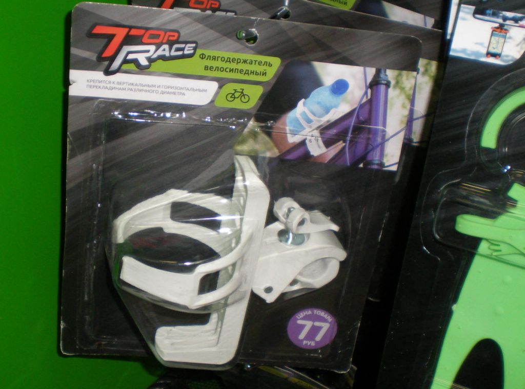 В Вопросах и ответах время от времени появляются вопросы на тему того как присобачить флягу на велосипед у которого нет бонок для ее крепления. Не касаясь того что велофляга — вещь на мой взгляд совершенно ненужная (во всяком случае, я в поездках по Крыму без нее прекрасно обходился и обхожусь), тем кому она все-таки до зарезу необходима могу дать следующий совет. Крепление для велофляги если на раме велосипеда нет бонок для него — надо покупать такое которое крепится без бонок. Например вот что я не далее как вчера увидел во вьетнамском магазине у нас в Уфе: