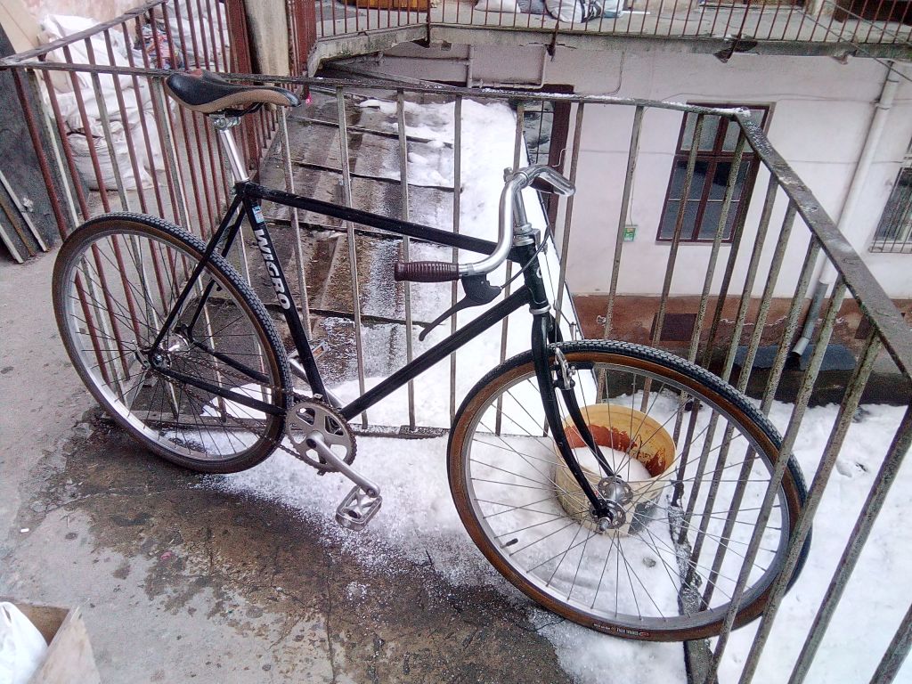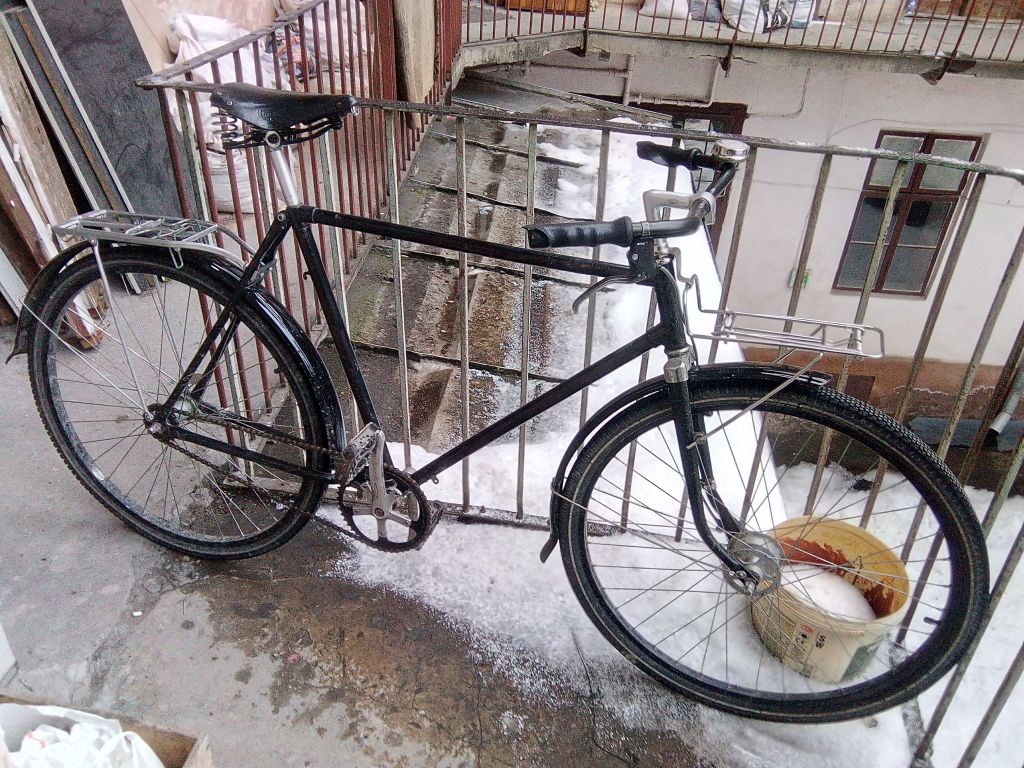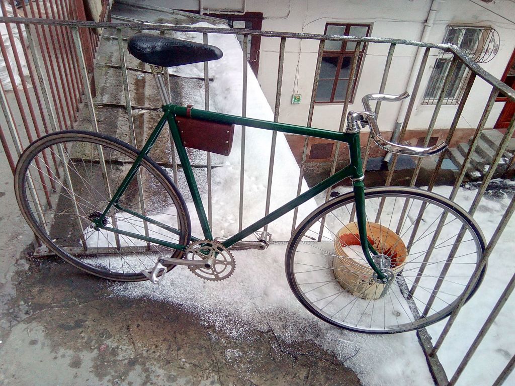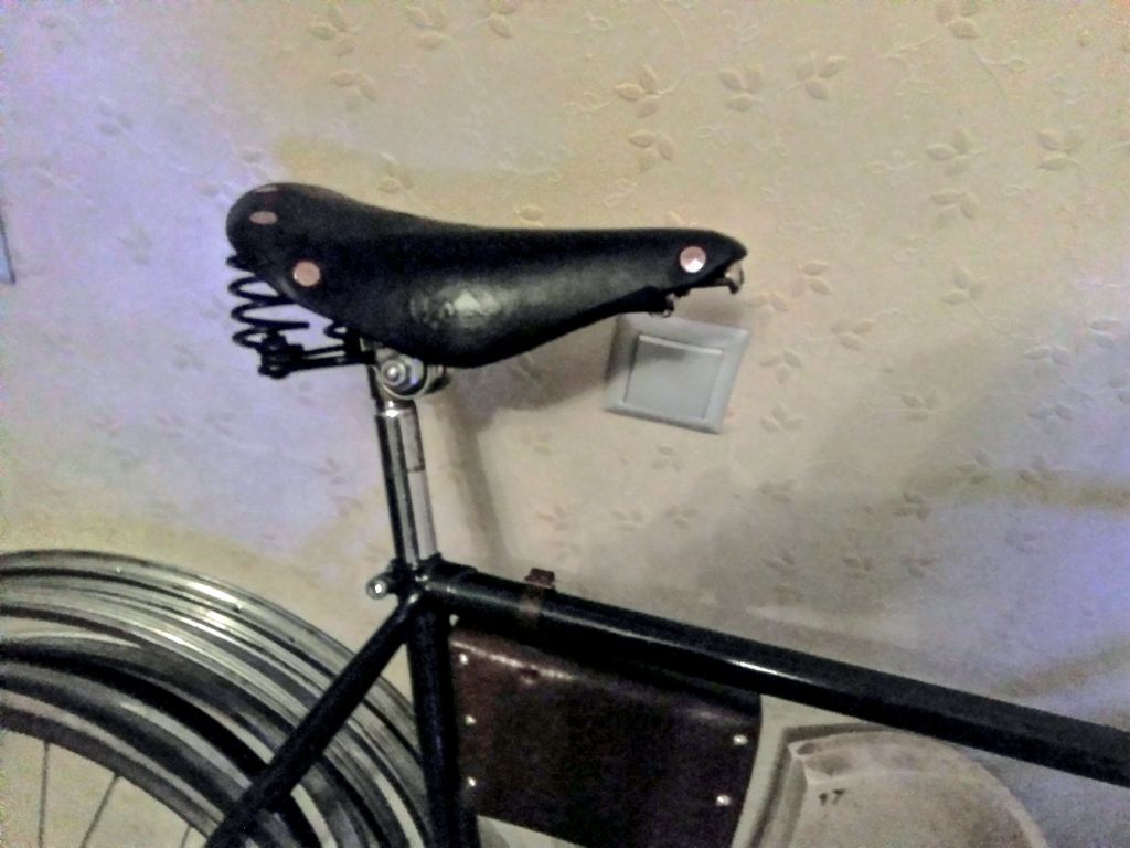 Передній надіюсь не виглядає колхозно?А то не впевнений чи він мені взагалі треба. Педалі тимчасово ашанівські поставив, нормальні ніяк не переберу. Думаю таки в вишневий/темно червоний покрасити, десь бачив фото на олдбайку темно-червона рама з чорними і білими комплектуючими класно дивиться.