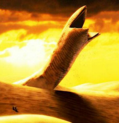 Если смотреть издалека, видно шай-хулуда, который воет на небо ночного Арракиса.
