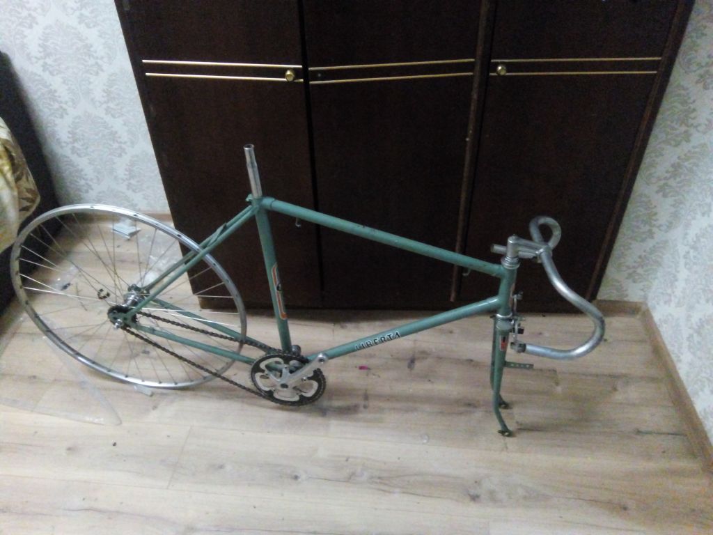 Райзер тимчасово поставив, весною надіюсь на базар мої любимі хромовані барани завезуть, треба буде прикупити ше пару штук. Зірку на 19 поки поставив на пробу. Завтра пробний виїзд. Замок сідла ужс , треба поміняти буде, а то кут нахилу нормально не регулюється з цим. Обода древні французькі, торпеда велостіл(якраз в тєму на чеха), передня втулка максі-кар, шприхи нержа, в 3 хреста обидва,гума цст реальних 28мм. Переднє колесо на 40 шприх (не ради суперміцності, просто нема куда його подіти більше . Сумніваюсь, шо воно хоть чимісь від аналогічного на 36 відрізняється)