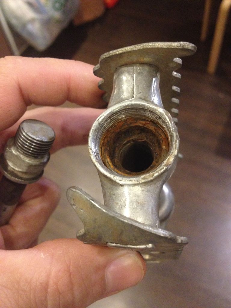 От теперь видно, что ось педальки бракованная с новья. И конус передней оси, с каверной который, тоже