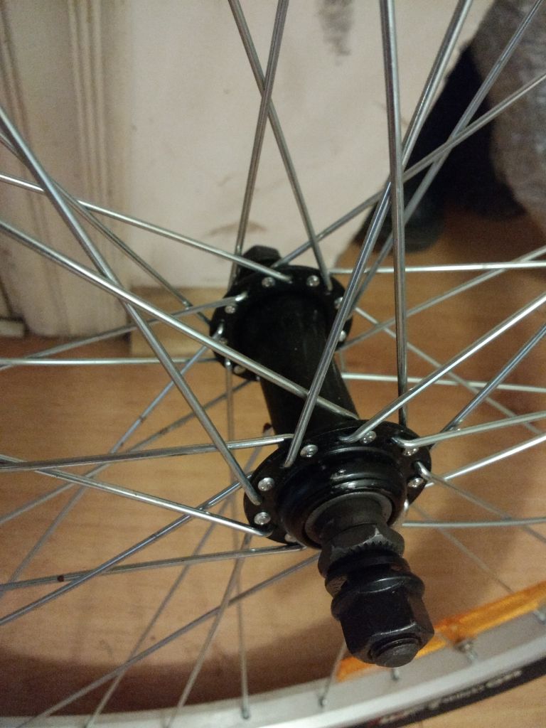 Смешно с Сашей получилось — пришел к нему за ободом, Саша не смог его найти и  вынес мне целое переднее колесо по цене обода — 150 грн. Даже с катафотиком img/ab
