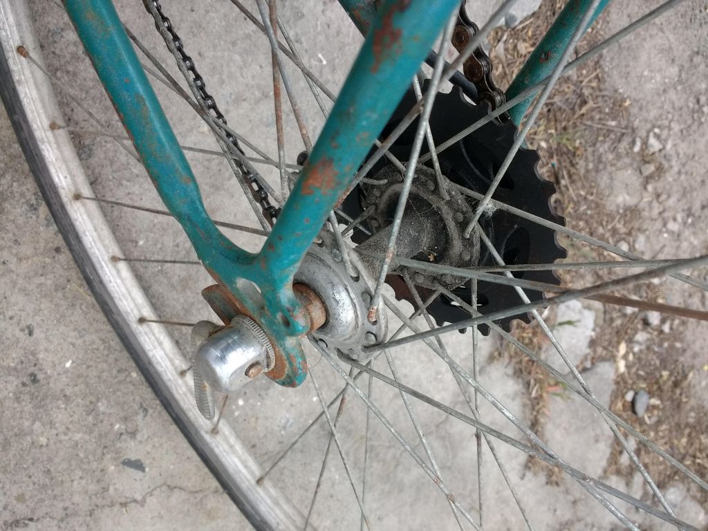 Короч, назначил я встречу возле гаража, пришел, жду. Думаю, щас подъедет клиент на машине, вытащит кучу хлама из багажника и будем смотреть. Но нет, приехал он на этом же велосипеде. Встречайте стартон 1989 года в типичном "кирпичном" исполнении — на туристовских ободах и шинах:
