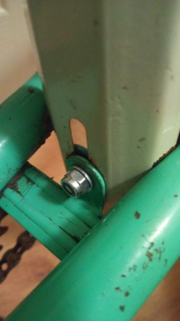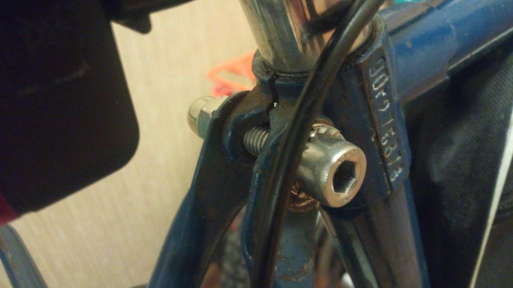 И наконец выбросил старый ржавый и, как оказалось, почти полностью слизанный болт фиксации подседела. Вместо него поставил нержавеечный М8х40 с колпачковой гайкой.