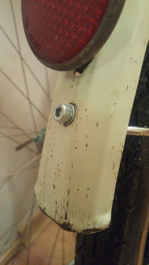 Заодно решил еще одну проблему — закрыл кусочком прозрачного пластика, подложив его под винт с шайбой, прорезь в заднем крыле, из-за которой постоянно был засран грязью нижний мостик: