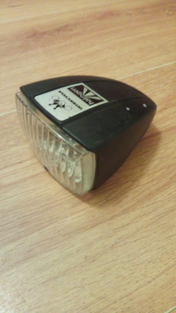 Акумулятор 6в лужний чи кислотний, або динамо. Для чого купляти хорошу (маю таку підозру) по світлорозподілу галогенову фару і переробляти на світлодіоди, при цьому нормального світлорозподілу точно не вийде. А якщо доробляти під хороший світлорозподіл з достатнім освітленням, то вийде дорожче готових китайських варіантів з доставкою. В цій ситуації я голосую за галоген.