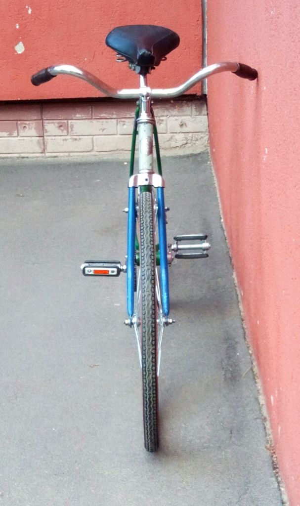 Рулевую сделал по уму — нашел нормальный нижний конус на Куреневке у Петровича. После отмывания его от засохшего масла оказалось, что ни шлифовки, ни даже полировки он не требует. И сел на своё место, как родной, ровно и плотно. Чашки тоже встали ровненько, руль крутится без люфта и закусывания. Неровность вилки на велосипеде не видна, колесо можно выставить ровно, поэтому гнуть-ровнять не буду, чтоб хуже не сделать. И поставил-таки сегодня шоссейный баран — очень уж ребенок просил. Пока установил его повыше, а то слишком непривычно будет ездоку, а там посмотрим. На покраску сейчас денег нет, поэтому пока поработаем над ходовыми качествами и комфортом.