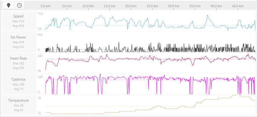 На ставшей уже постоянной трассе с подъёмом на 800 метров за 50 км.