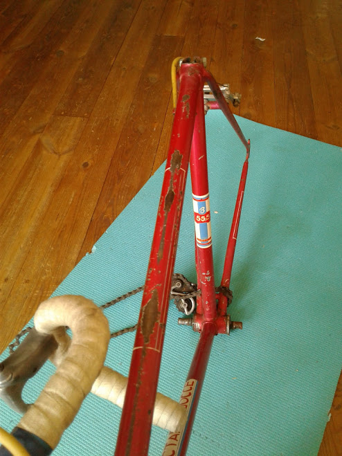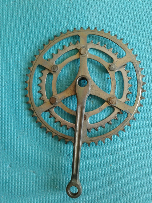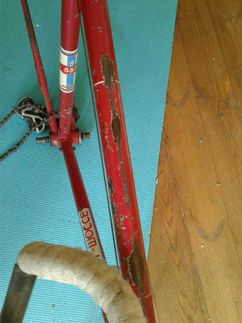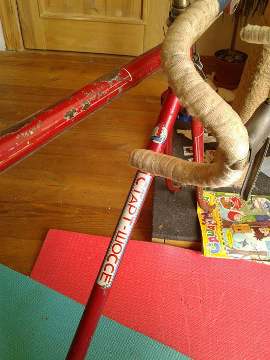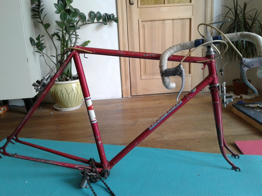 Думаю, звезда на 40 не родная. Отличается от большой внешним видом и хромом. Рама 56го размера,приехала в состоянии-под покраску. Декали в хорошем виде, но слишком много потертостей и есть ржавчина. Буду красить. Цепь так и на смог снять. Замка нету, видимо нужно выжимать оську. Но вот какую? Все оськи как будто бы расклепаны керном (в центре небольшая точка). Кто подскажет, как ее снять?