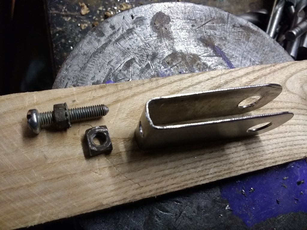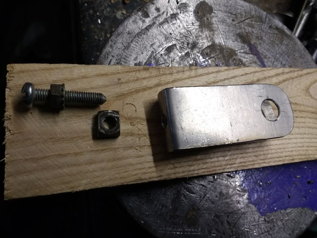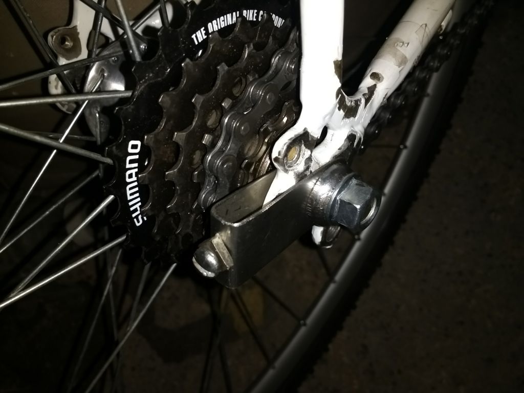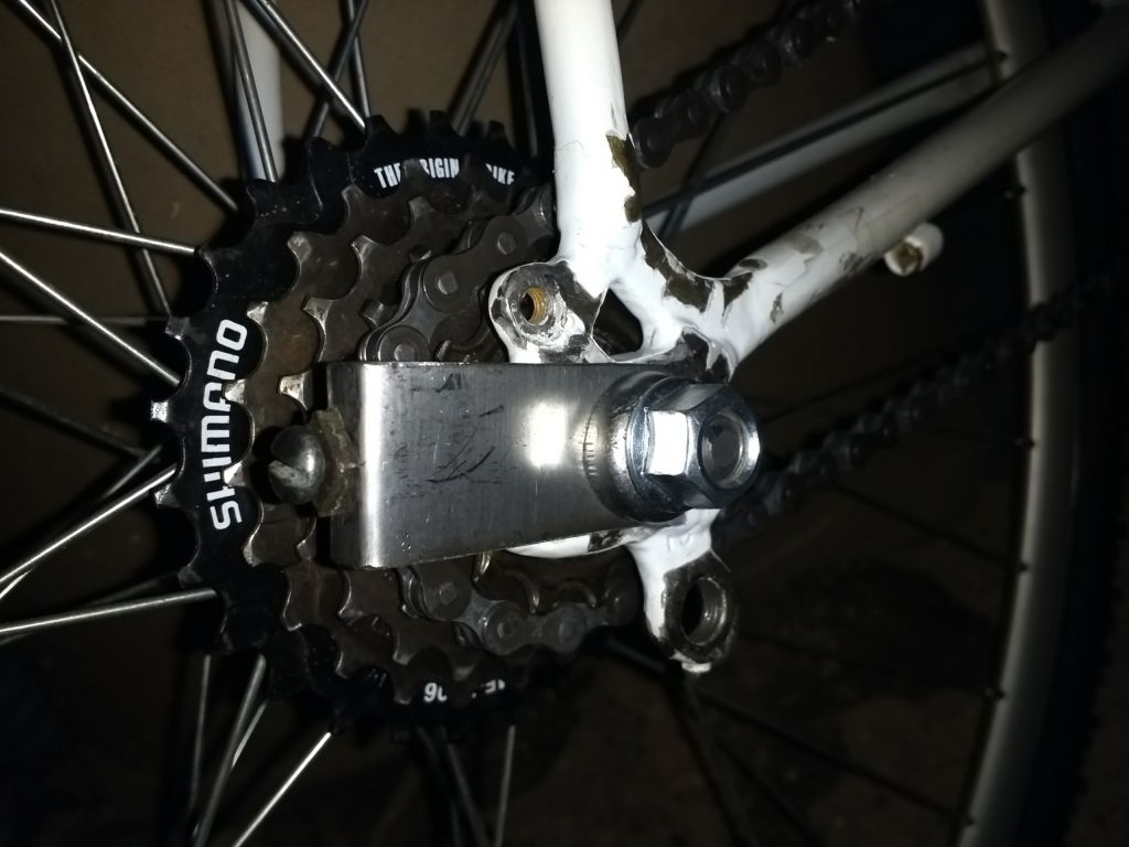 ) предложил и использовал интересный вариант: пластинка с двумя дырками — одна под ось, другая под болт того же диаметра. Болт размещается в дропе ЗА осью, зажимаетмя вместе с пластинкой. Таким образом, он помогает удержать ось.