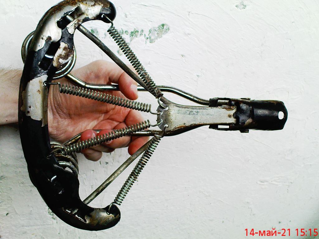 А вот пружины горизонтальные, та шарнирная пластина, которая натягивает пружины, два изогнутых прутка под кожаным верхом имеют другое покрытие.