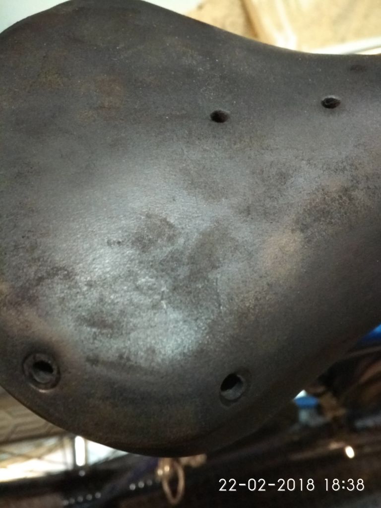 Ещё с черпанными, шоссейными, сёдлами есть один нюанс. Более поздний сёдла, конец 80х начало 90х , могут иметь шкуру не качественной выделки, то есть: вид седла ровный, красивый но присутствуют глубокие трещины, при вышлифовки снимаем верхний слой и тут ползут рыхлые участки на самом седле. И да же если Вам удалость это зашлифовать, то после окраски эти места будут выделяться более тёмными или светлыми пятнами.