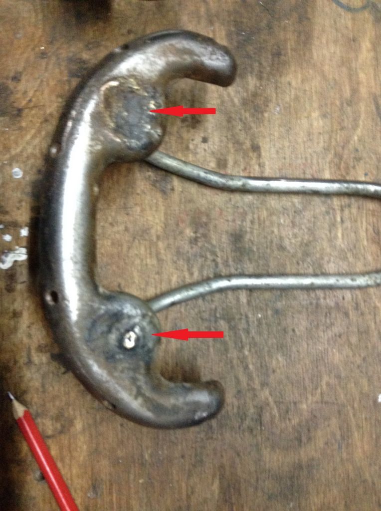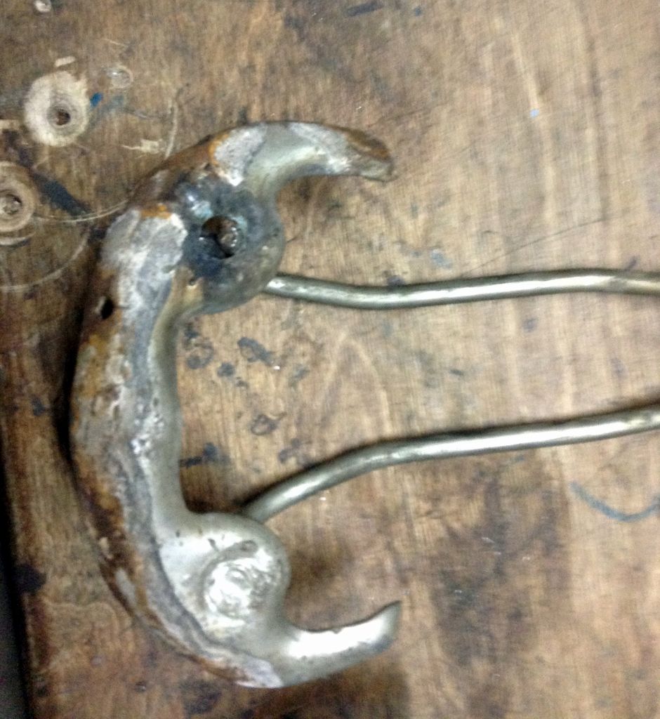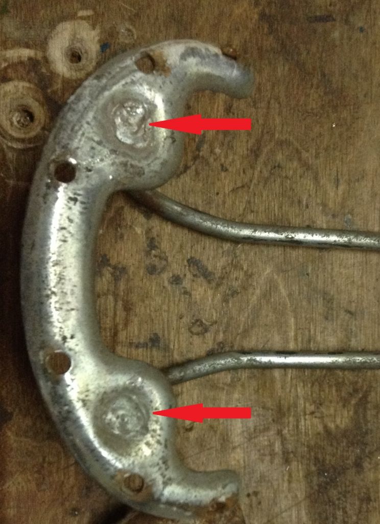 Ещё один "вариант лечения" подобной проблем — сделали отверстие пайке под размер прутка и прихватили газосваркой. Результат: Пруток закрепили, но что то пошло не так и рамка перекосилась на одну сторону, лука так же была перегрета и стала пластилиновой .