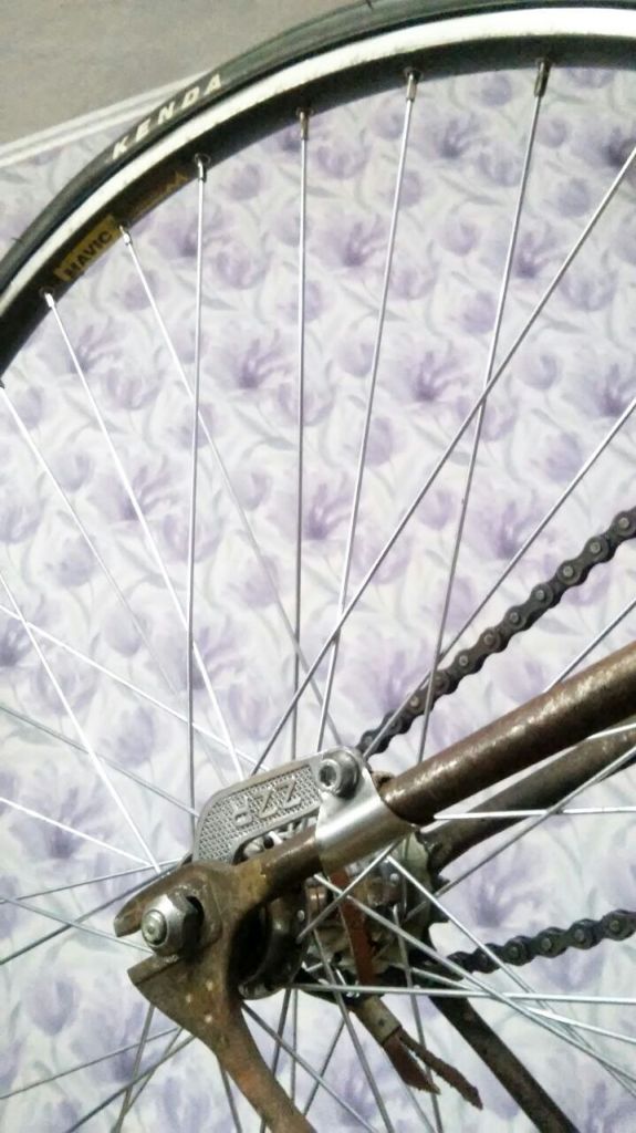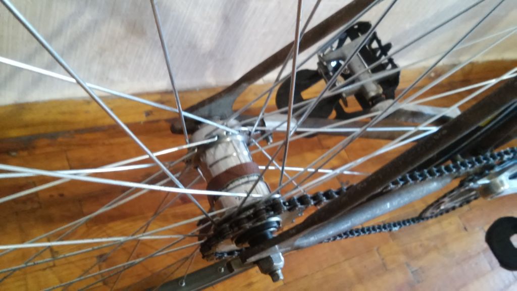 Кстати, колесо получилось довольно крепко натянуто, прям по шоссейному, даже как то непривычно видеть в центре этой натяжки старичка-торпедо, он видать привык к более размеренной жизни))