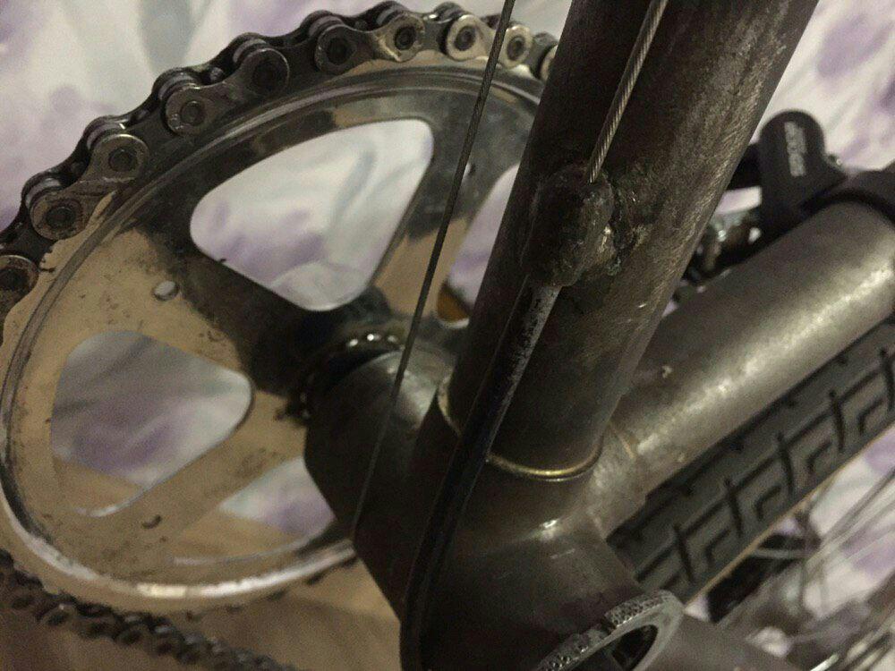 А який сенс двох бонок для гальмівного тросу на правому пері — щоб оголити 10 сантиметрів тросу? А от під кареткою чомусь не поставили пластикового слайдера чи хоч направляючої для тросу заднього дерайлера