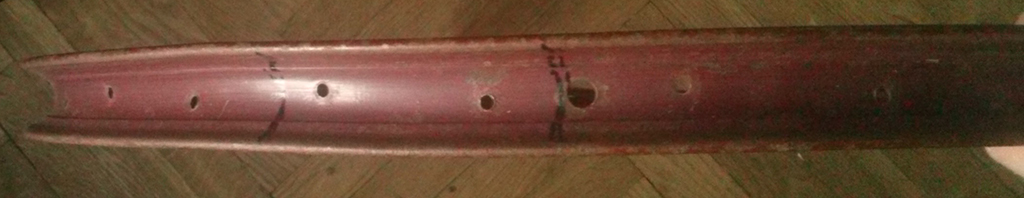 У этой рамы геометрия в целом нормальная. Перемерял перья: нижние по 37,5 см — вроде как одинаковы. А верхние отличаются 50,3 см и 49 см, но в районе подседела припаяны со смещением, которое компенсировало разницу длины. Если одна деталь кривая в плюс а другая в минус, то в суме все получится отлично img/hitry