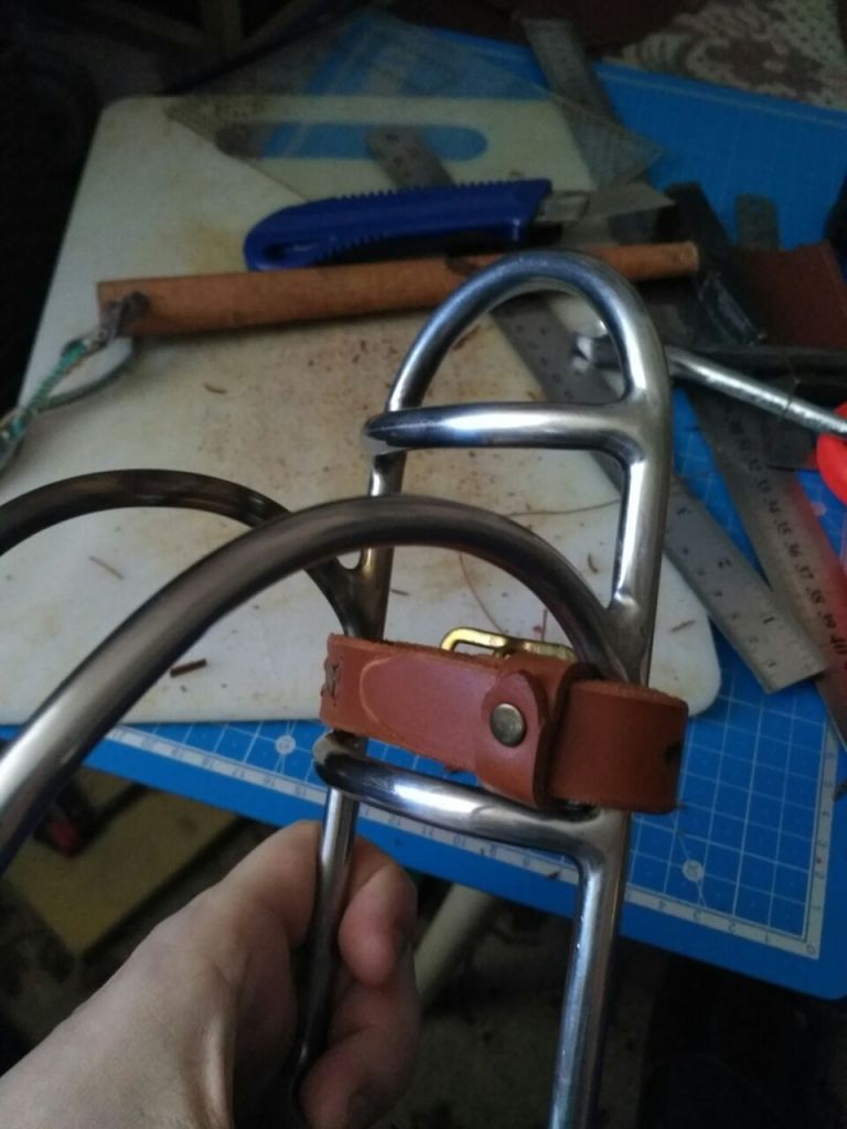 Кнопка была слабая, поэтому удалена. Пряжки надёжнее и уместнее.