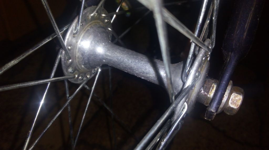 Заднее колесо было собрано на усиленных спицах, отчего сам обод потрещал и пришел в негодность. А передний на обычных, потому сохранился идеально.