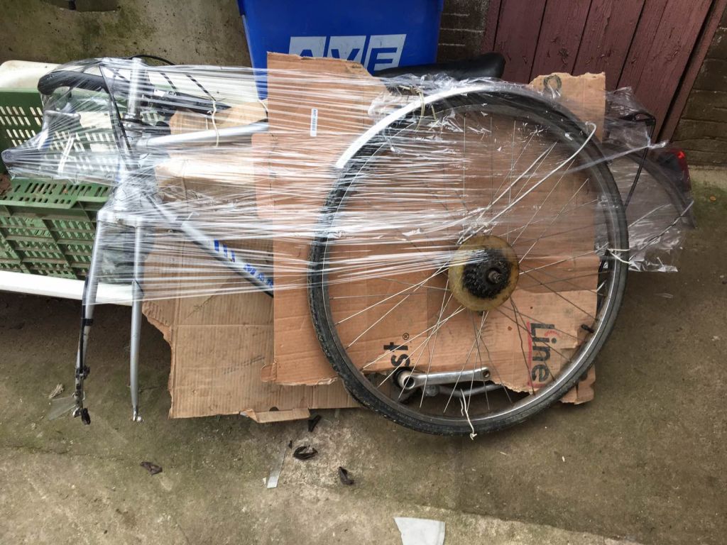 Примерно неделю я общался с продавцом, чтоб он снял с велика всё торчащее, уменьшив габарит. А потом запаковал в плёнку и картон, и так и отправил, чтоб дешевле.