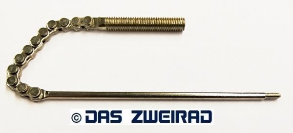 Тоже смотрел на эту железячку. Вроде других вариантов нет. Хотя толстая усиленная спица имеет совместимую резьбу, но опять же надо к штоку из этой спицы как-то цепочку приделать.