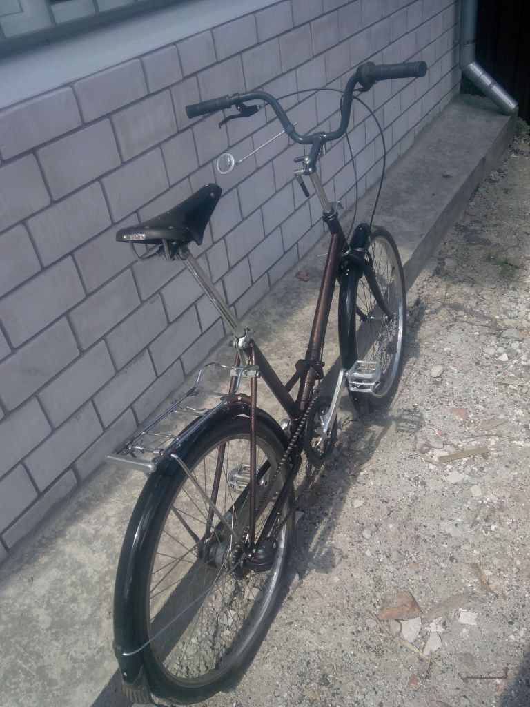 Собирал по запчастям, тоже купил на ОЛХ рамку, кожу, точил винт натяжной, у продавца была кожа еще и трековая — но она длинее и уже.
