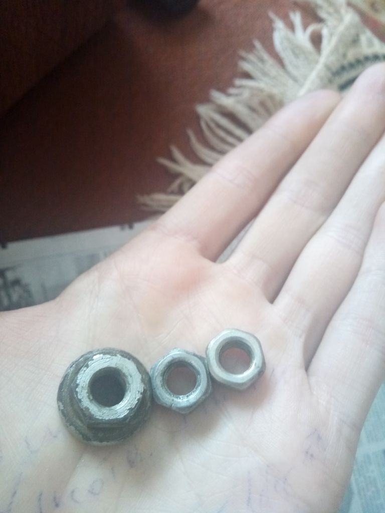 Эти 2 гайки ненакручиваються а вот где с шляпой без проблем