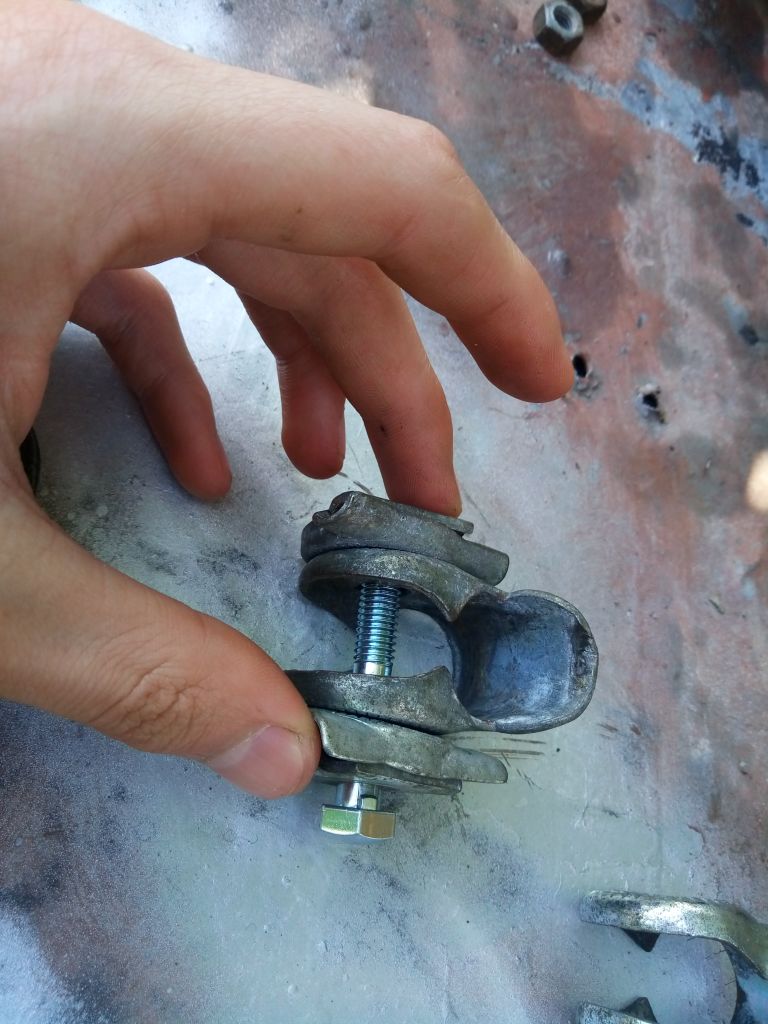 Олег, напаркуа этот болт? Хомут комплектный позволяет всё нормально собрать.