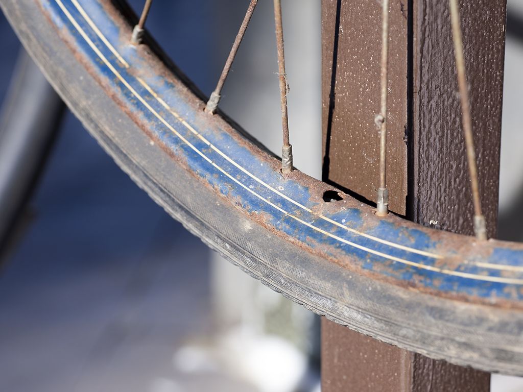 Когда колесо было привинчено к раме, я сначала не обратил внимание на его забавную особенность. Когда снял — удивился явной и чрезмерной тяжести. Ну и наконец заметил, что в тяжёлой упругой шине просто не имеется ниппеля!