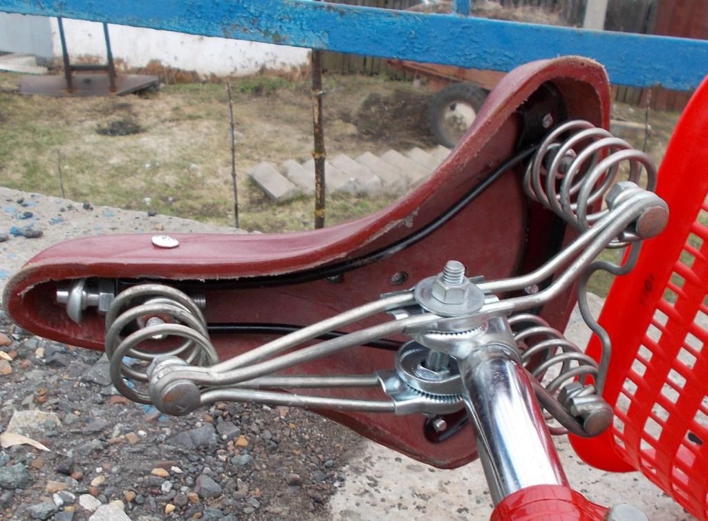 Там видны продольные железные дужки но даже под моим весом 110 кг они не касаются кожи при нормальной езде а только при тряске на совсем уж больших колдобинах..