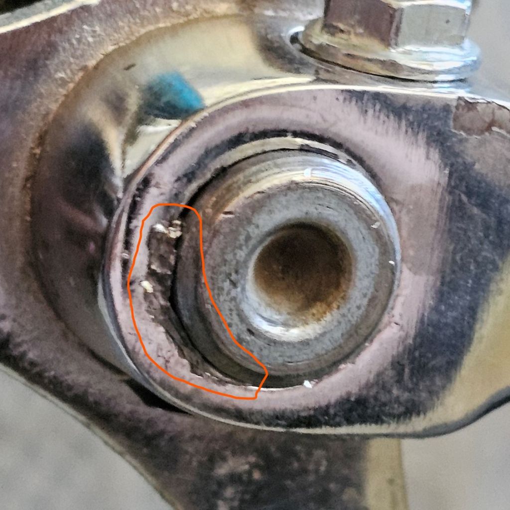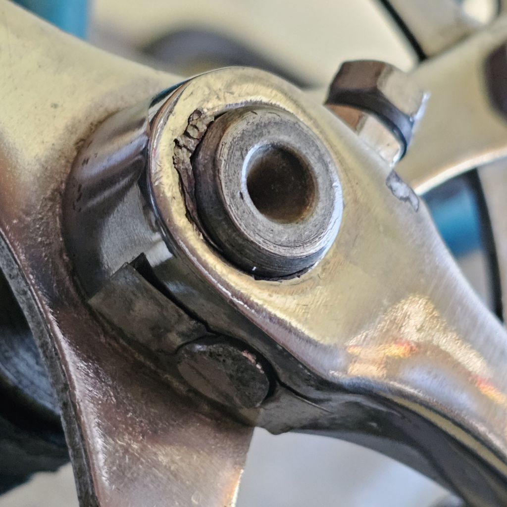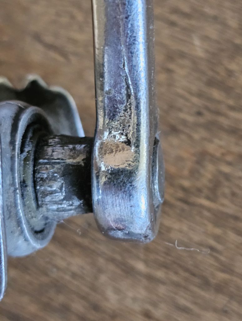 Маленькая предистория: родной шатун из-за трещины и поломки был заменен на некий другой, найденный в закромах у друга. С ним откатал все лето прошлого года, несмотря на то что с ним был некий ньюанс, а именно ось педали была в него вкручена немного под углом и как следствие площадка педали расположена с небольшим наклоном, нога как бы сползает наружу (не прямо что бы сильно, но ощущение имеется). Забирал я этот шатун с вкрученной в него осью педали, выкрутить не смог, т.к. в определенный момент выкручивания она там прямо мертво застревает и все, ну и побоявшись сломать шатун собрал педаль прямо на этой оси и катался в общем. Ближе к нынешнему сезону захотелось мне поменять большую звезду на шатуне на поменьше, нашел б/у шатун с двумя звездами (51 и 43, так вроде), заказал, получил, на вид хороший, износ звезд совсем небольшой, но вот с его посадкой на валу проблема теперь. Такое впечатление, что отверстие под клин в нем сделано как-то не так. Или под углом, или дальше от оси вала, или оно само больше чем надо. При сборке клин в него заходит полностью, а в предыдущих шатунах он торчал. А без монтажа шатуна на ось клин вообще чуть ли не со свистом проваливается. В итоге после нескольких попыток с прокладками родной уставший клин ушатался по резьбовой части, купил китайски (а других и нет), с ним не лучше, если не хуже. На фото как раз он и стоит. Прокладка на валу такого размера, потому что большего не смог вставить и натянуть все это дело на вал. Ну и фото где весь шатун показан, это из которого не могу выкрутить ось педали... . Что делать?) Перекинуть звезду на шатун с осью под углом самое простое, но хочется же с ровной что бы было ) Есть вариант победить? И кстати, на этом купленном шатуне капец какая жесткая трехлапка. Одну лапку надо было поправить, очень сильно сопротивляется, до конца так и не доправил ... И педаль с ним шла на насыпи, а у меня уже сепараторные подшипники были. Может этот шатун конструктивно к моему валу не подходит?