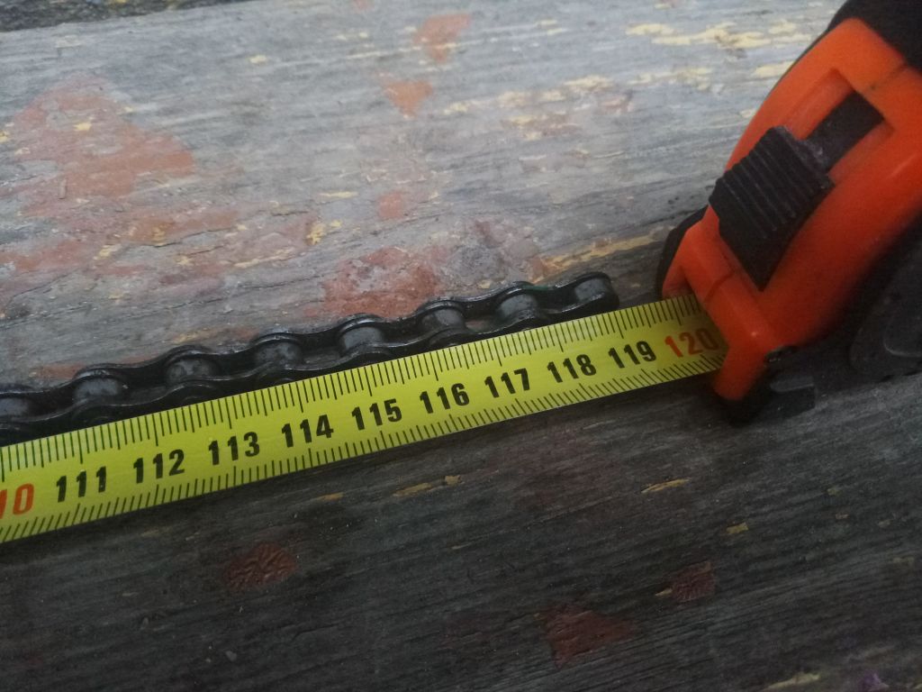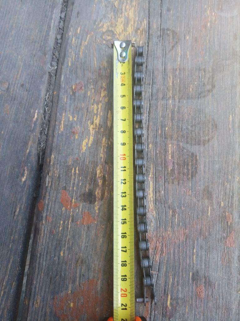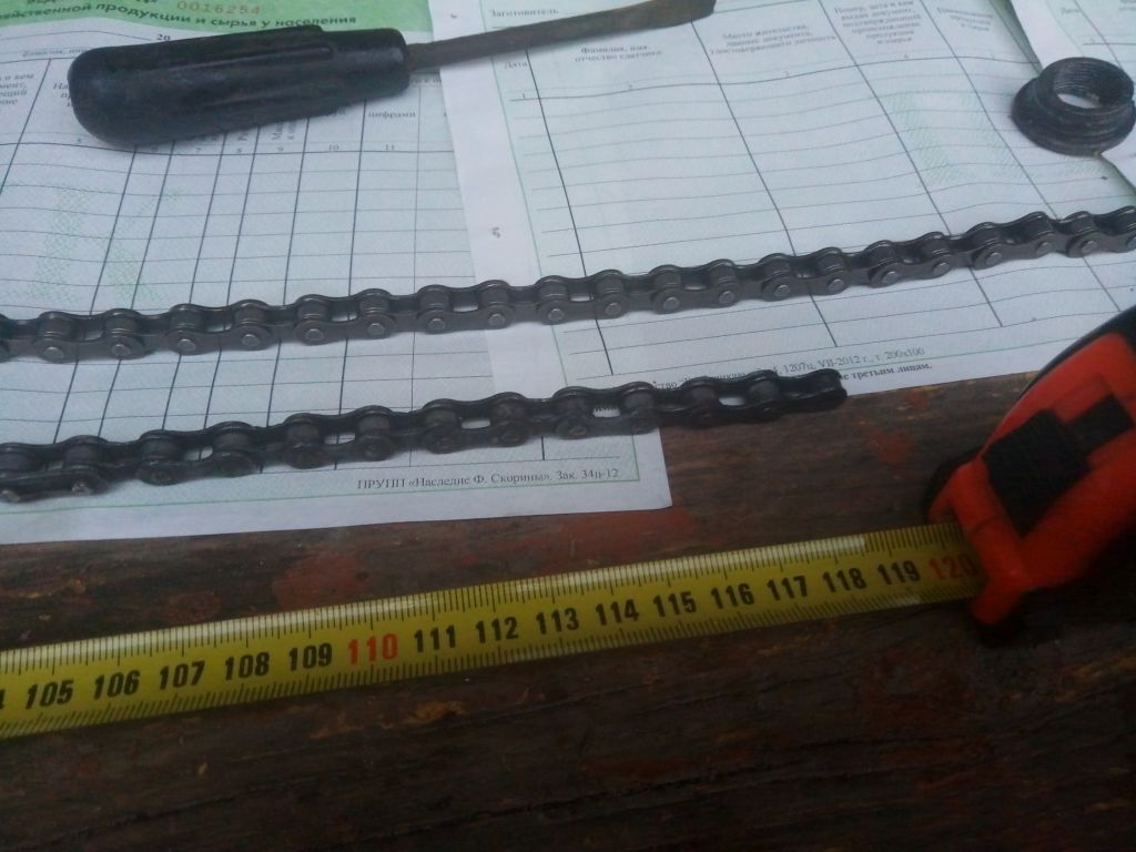 Хех екарный бабай... Гнем из гвоздика деталь по форме похожую на букву П. Длина равна 1звену (2полузвена) и засовывая между звеньями сразу видно скок надо.