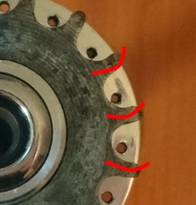и на эта звезда будет работает с новой цепью то зацепление происходит только одним роликом, в месте натяжения, что естественно приводит к повышенной нагрузке на цепь и более быстрому ее растяжению, а звезда будет приобетать вид "свастики".